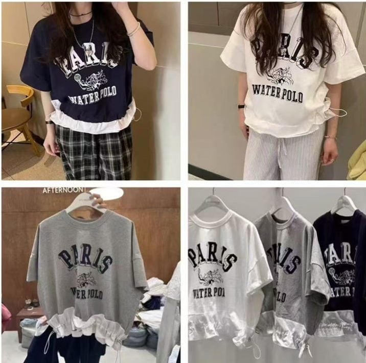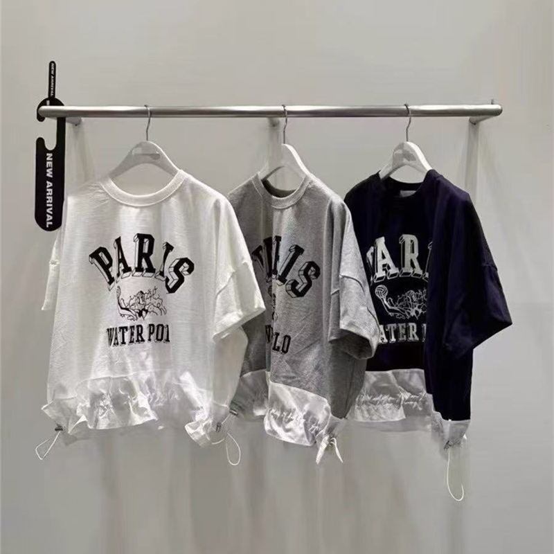 【2025年春夏INS新作】韓国ファッション ナイロンTシャツ(ブラック/ホワイト/グレー)