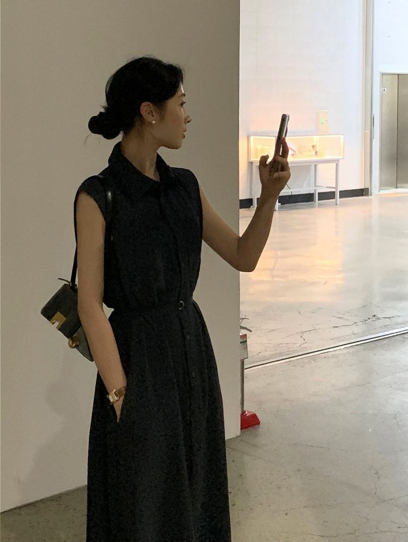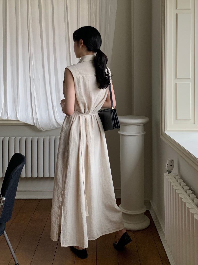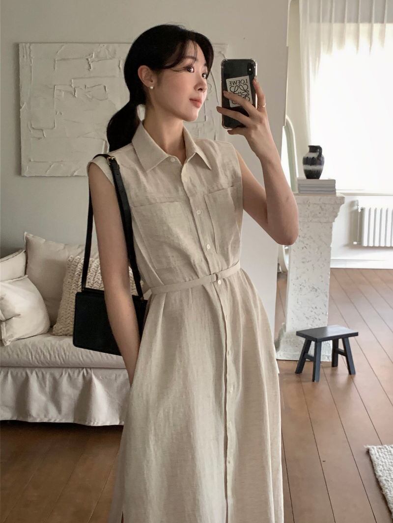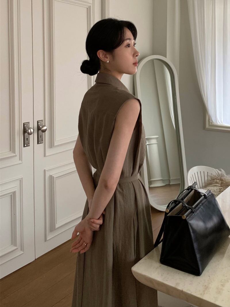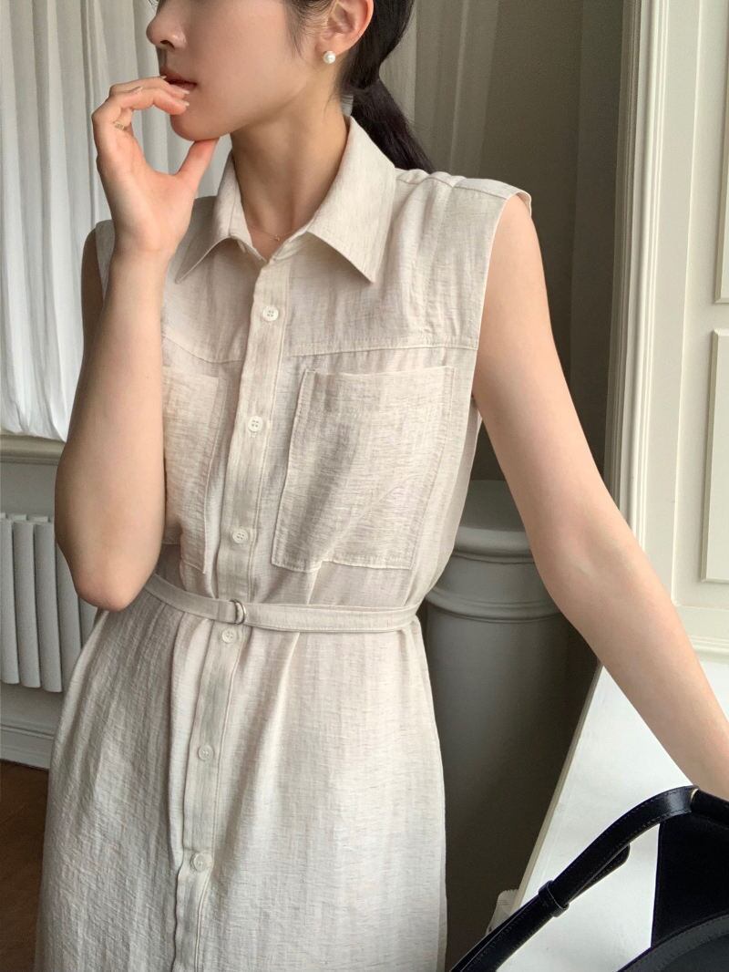 リラクシーなのにきちんと感もある、ベルト付きノースリーブワンピース。