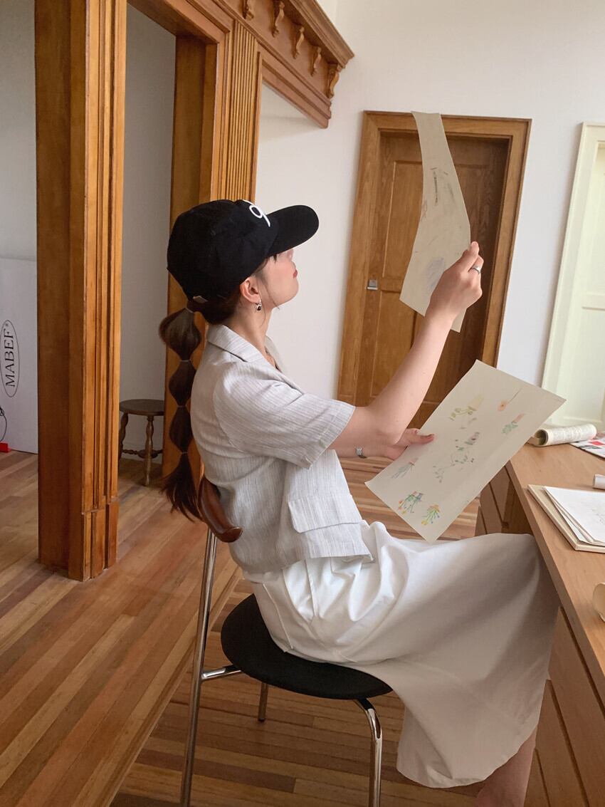 短めの着丈でバランス良く、ハイウエストボトムとの相性も抜群です◎