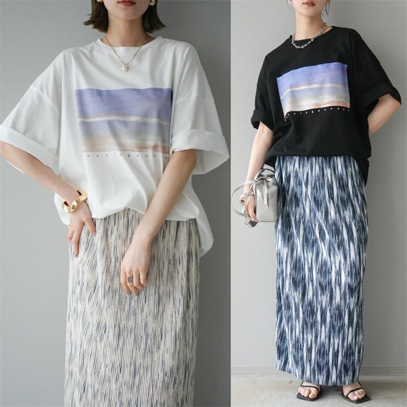 2025年INS 春夏 INS新作 おしゃれ chic 韓国ファッション トップス Tシャツ(ブラック・ホワイト)