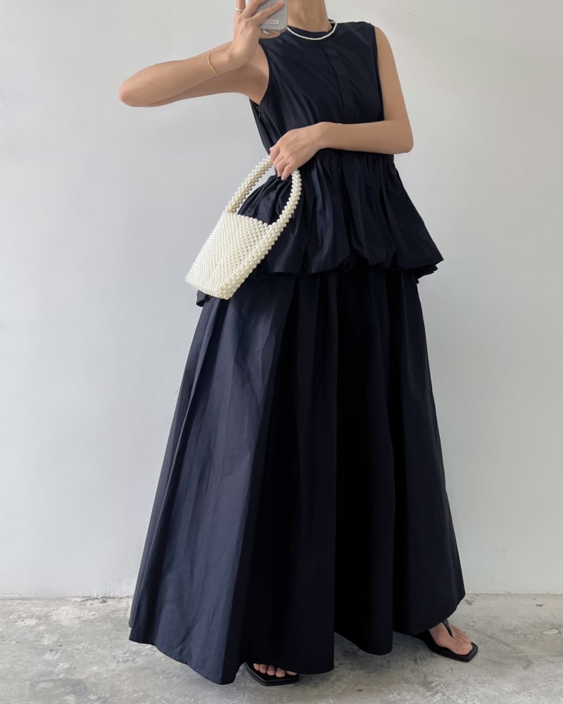 タンクトップ・ワンピース・スカートの組み合わせで、