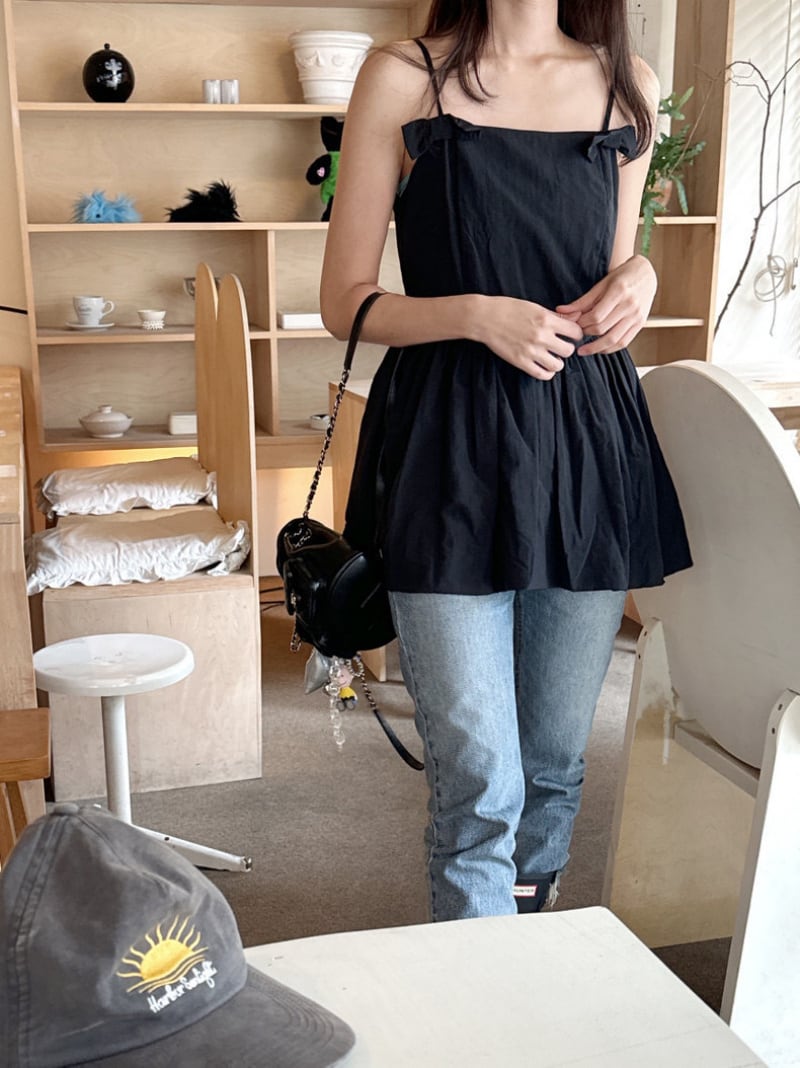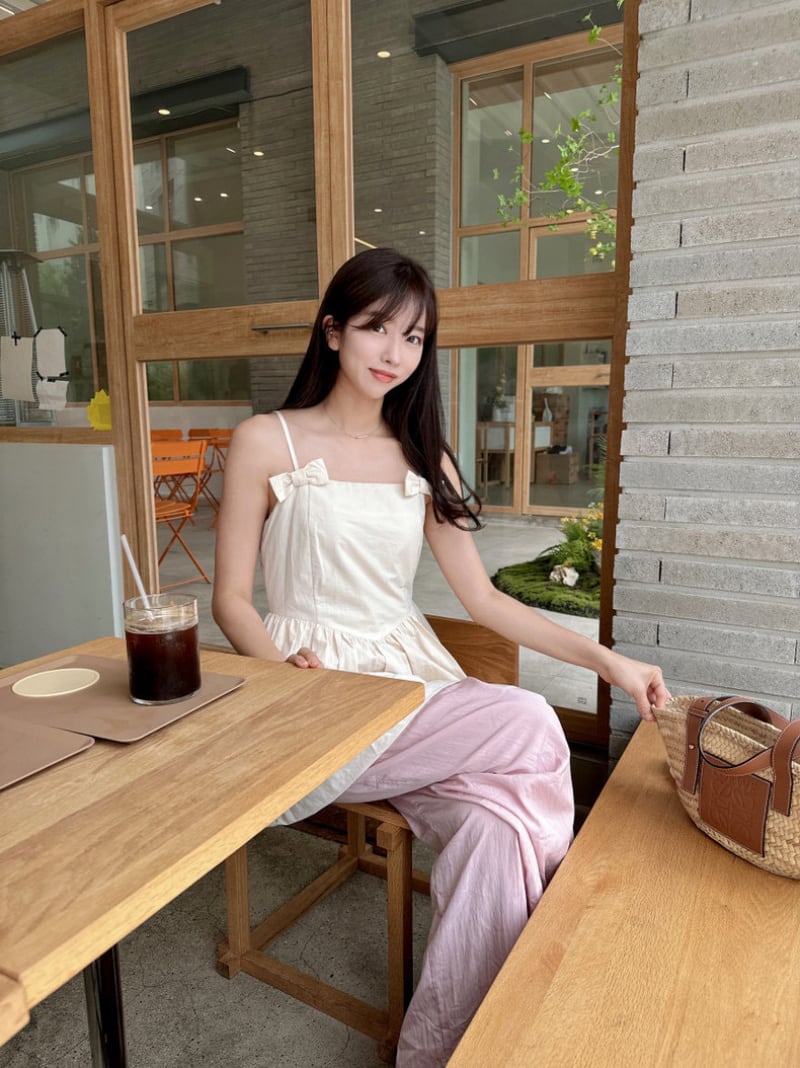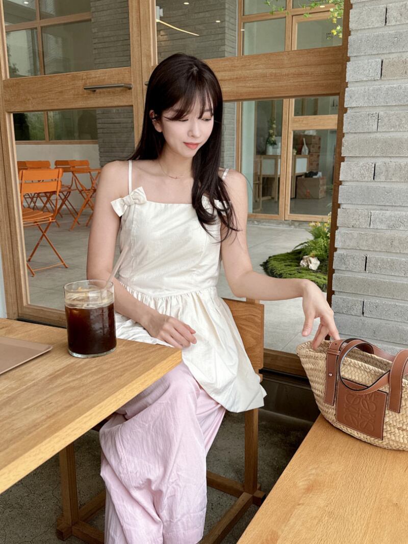 春夏らしい軽やかな印象と、韓国ファッションらしい洗練デザインが魅力のキャミソールワンピース。