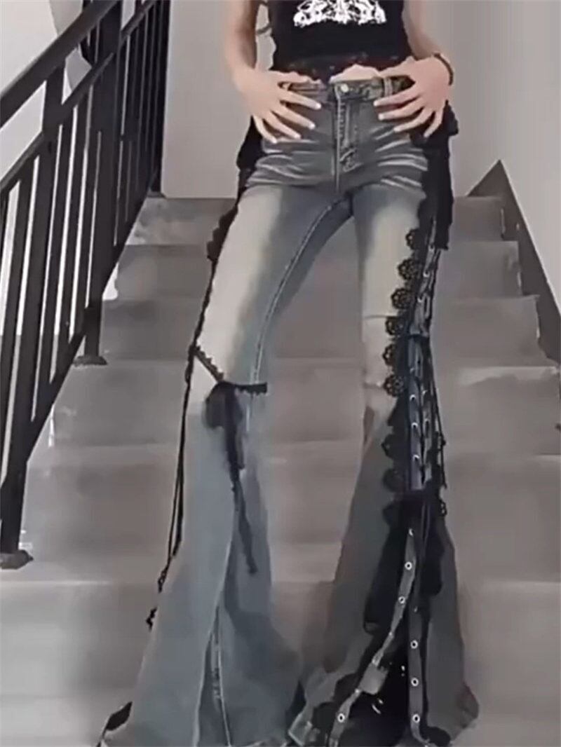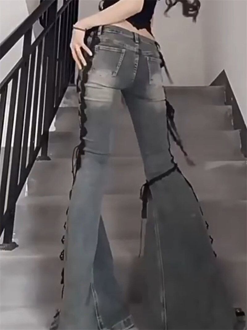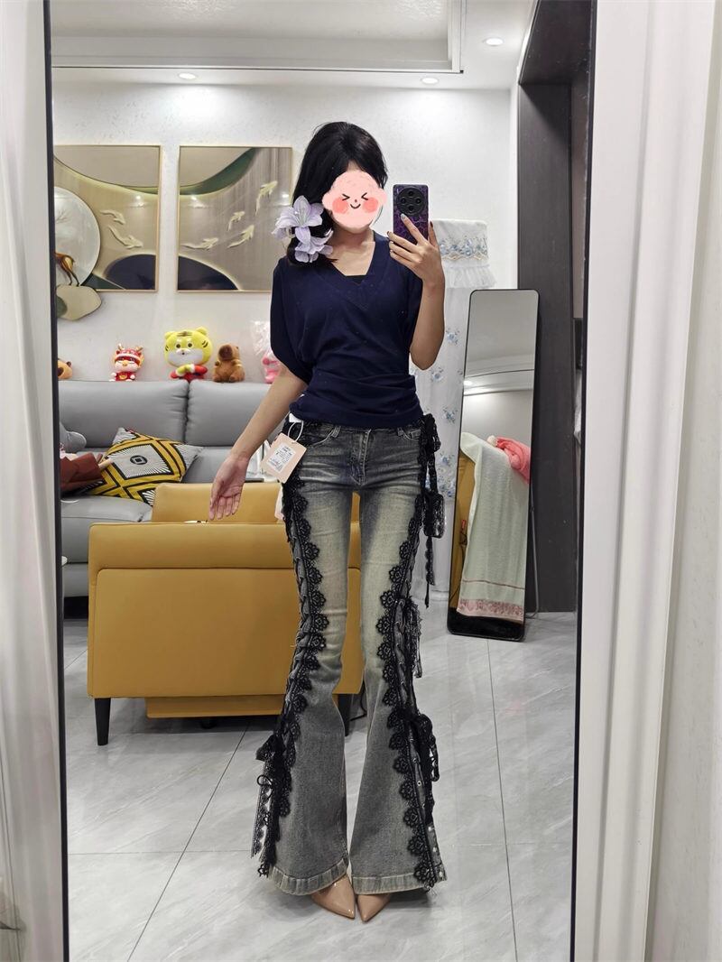 2025年INS 春夏新作 韓国風 気質 人気 カジュアル おしゃれ ロング デニムパンツ