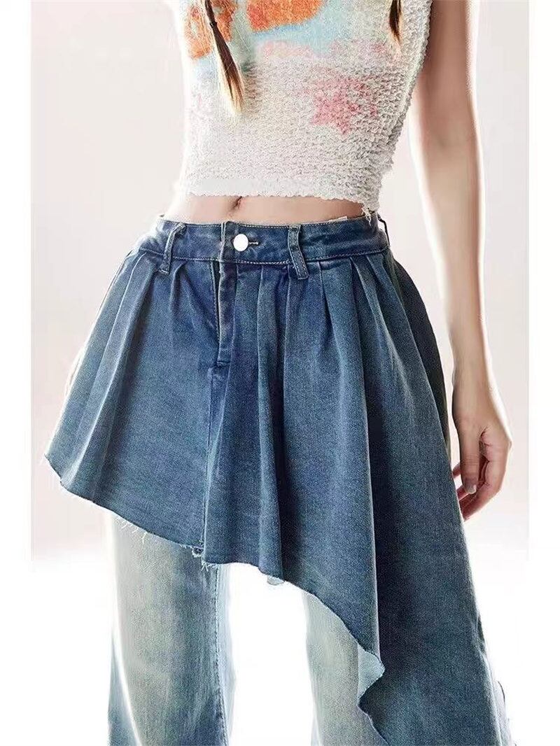 2025年INS 春夏新作 韓国風 気質 人気 カジュアル おしゃれ ロング デニムパンツ