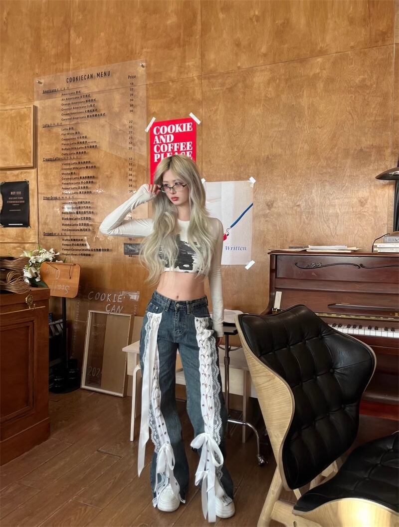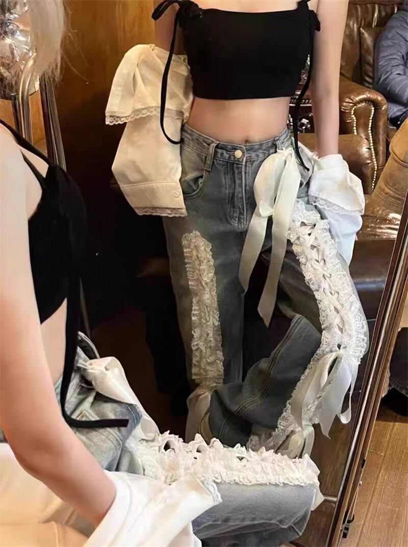 2025年INS 春夏新作 韓国風 気質 人気 カジュアル おしゃれ ロング デニムパンツ